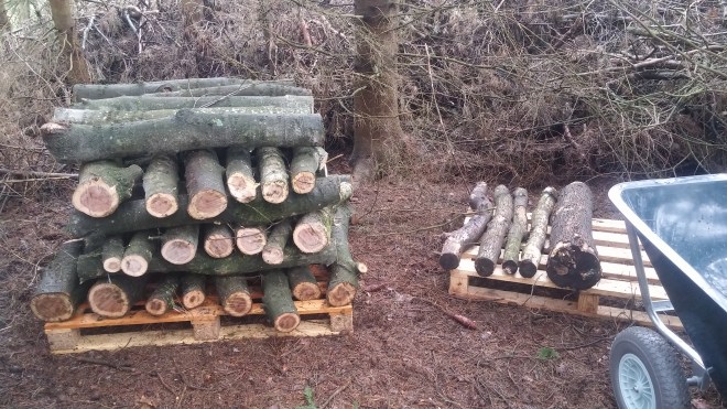Er ligt al een mooie stapel eikenstammen klaar om geënt te worden!